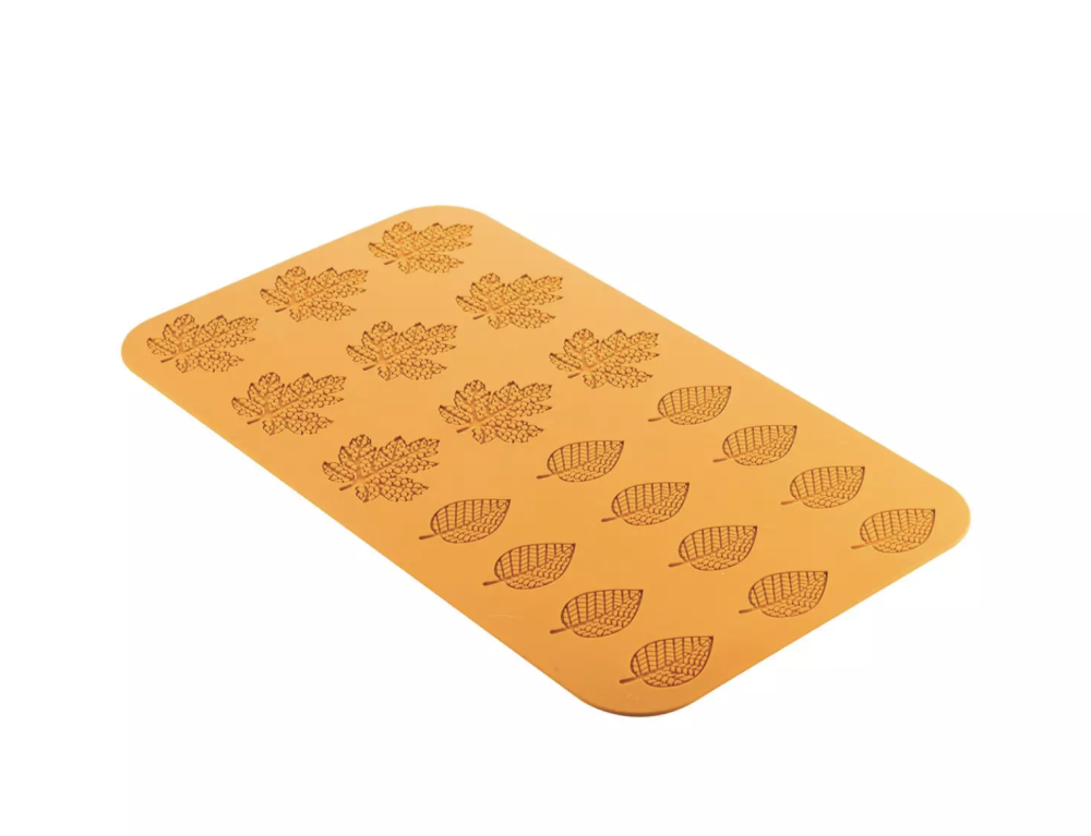 Stavite malu količinu smjese preko šablona u obliku lista ili koristite Silikomart Bosco Leaf profesionalni silikonski kalup, koji sadrži dvije šupljine inspirisane listovima. Profesionalni kvalitet silikona omogućava savršenu fleksibilnost, precizno vađenje i ujednačene rezultate – idealno i za slatke i za slane kreacije.