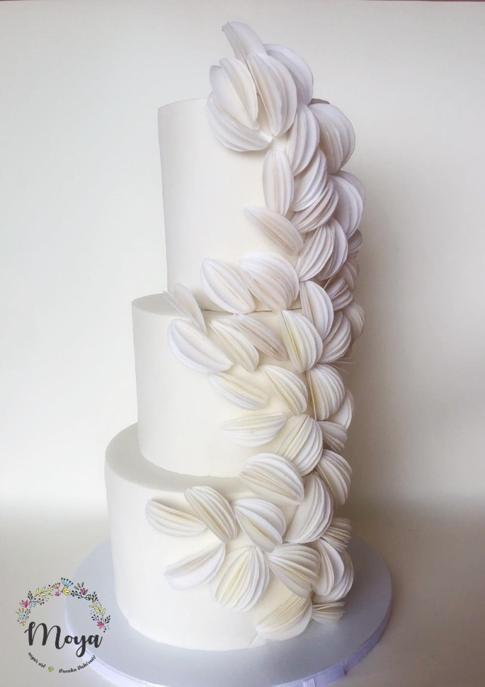 Krugovi od vafera poređani u grupama i različitim pozicijama, zalepljeni na stranice torte prave efekat zanimljive teksture bilo da su samostalni ili uz dodatak drugih dekorativnih elemenata kao što su lepeze, malo lišće i topera od pleksiglasa.