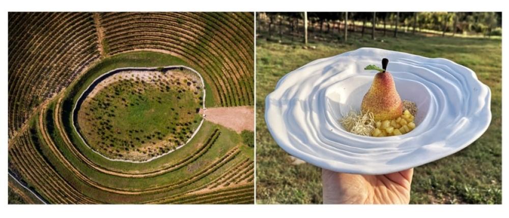 Ta priča o prijateljstvu čovjeka i prirode, o njegovoj brizi i ljubavi prema prirodi bila je inspiracija za desert “Kruške lijepe Helene”. Sastojci su kao u istoimenom francuskom klasiku među desertima - bademi, vino, kruške koje berem u jesen i od njih spremam compote s bijelim vinom poteklim iz vinograda u kojem je nekad bila stara kruška iz ove priče, a sve posluženo u tanjuru čiji oblik neodoljivo podsjeća na amfiteatar našeg vinograda.