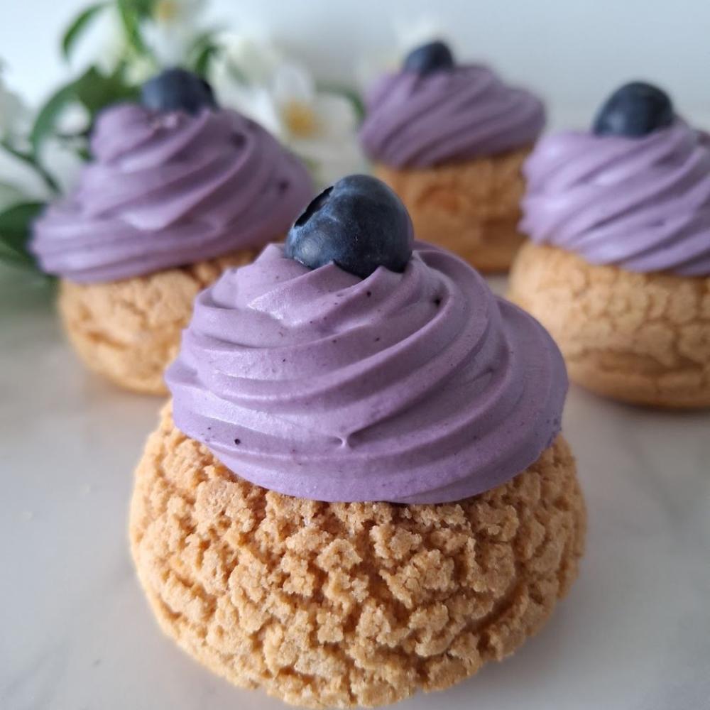 Craquelin od borovnice ukrasiti ganacheom od borovnice. Ostale craqueline merengueom.