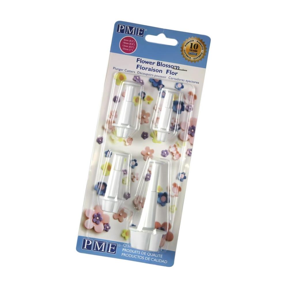 Izrezivači sa izbacivačem u obliku cvjetića, pogodni za izradu ukrasa od dekor mase. Set sadrži 4 izrezivača 0,6/1/1,3/2,5cm