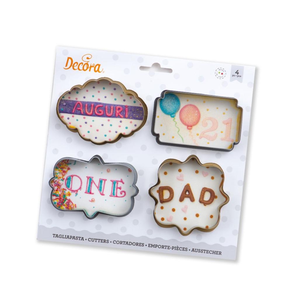 Set od četiri modlice za izradu keksića, medenjaka, kao i pločica za ime koje možete staviti na tortu.