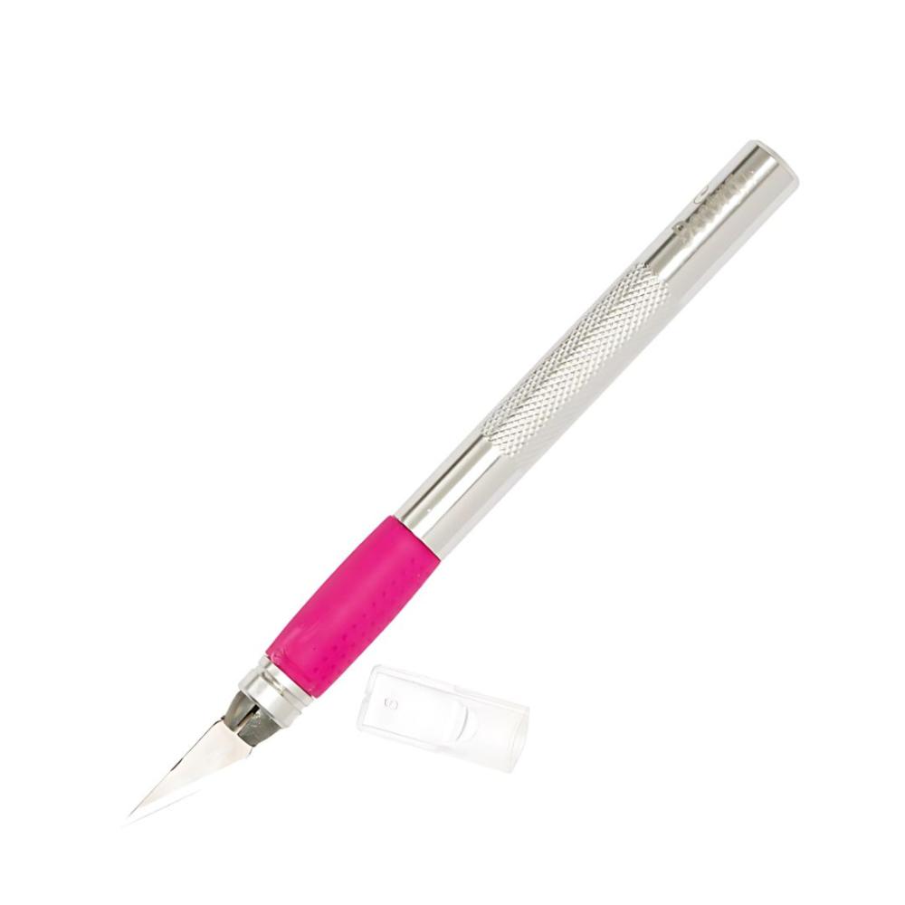 Sa protivkliznom ručkom i sigurnosnom kapicom, savršen za rezanje i dorađivanje sitnih detalja. Ima zamjenjivu oštricu (rezervna oštrica nije uključena).